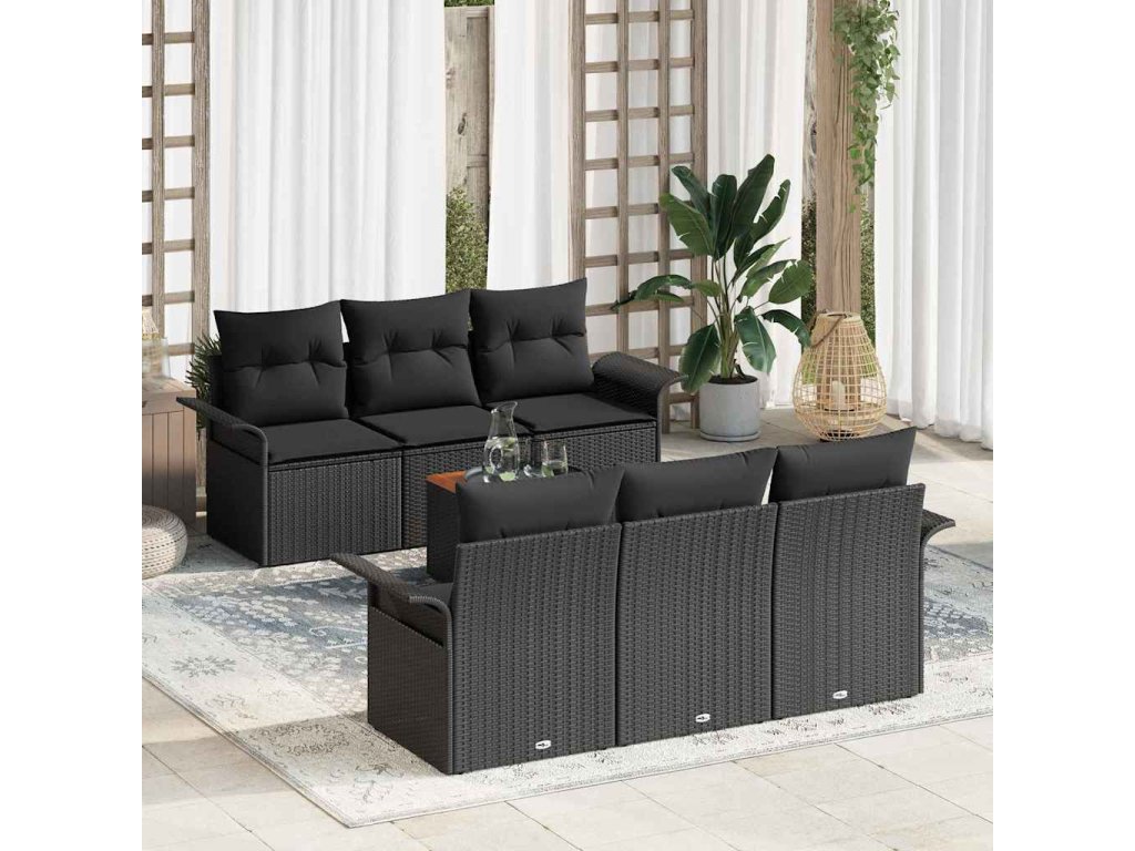 Sada zahradních pohovek s polštářem s úložištěm 7 pcs Černá 3355944