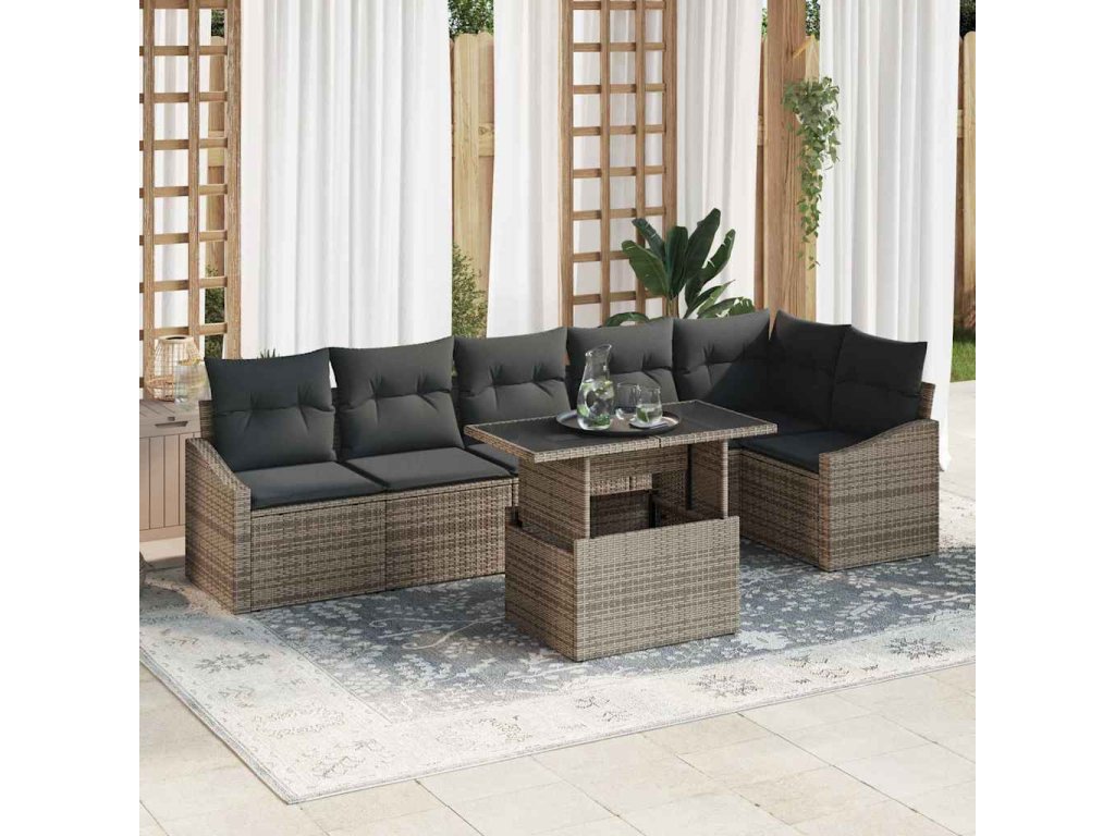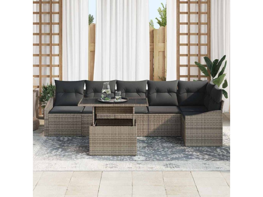 Sada zahradních pohovek s polštářem s úložištěm 7 pcs Šedá 3357752