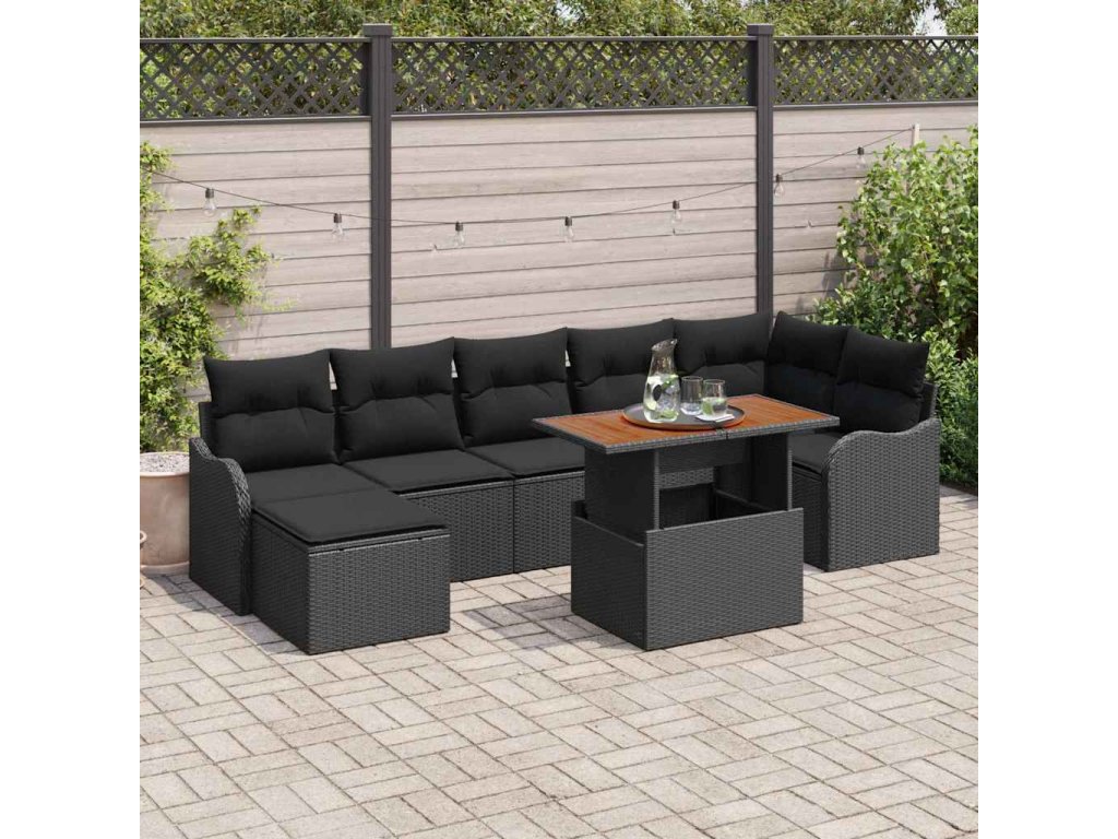 Sada zahradních pohovek s polštářem s úložištěm 8 pcs Černá 3349491