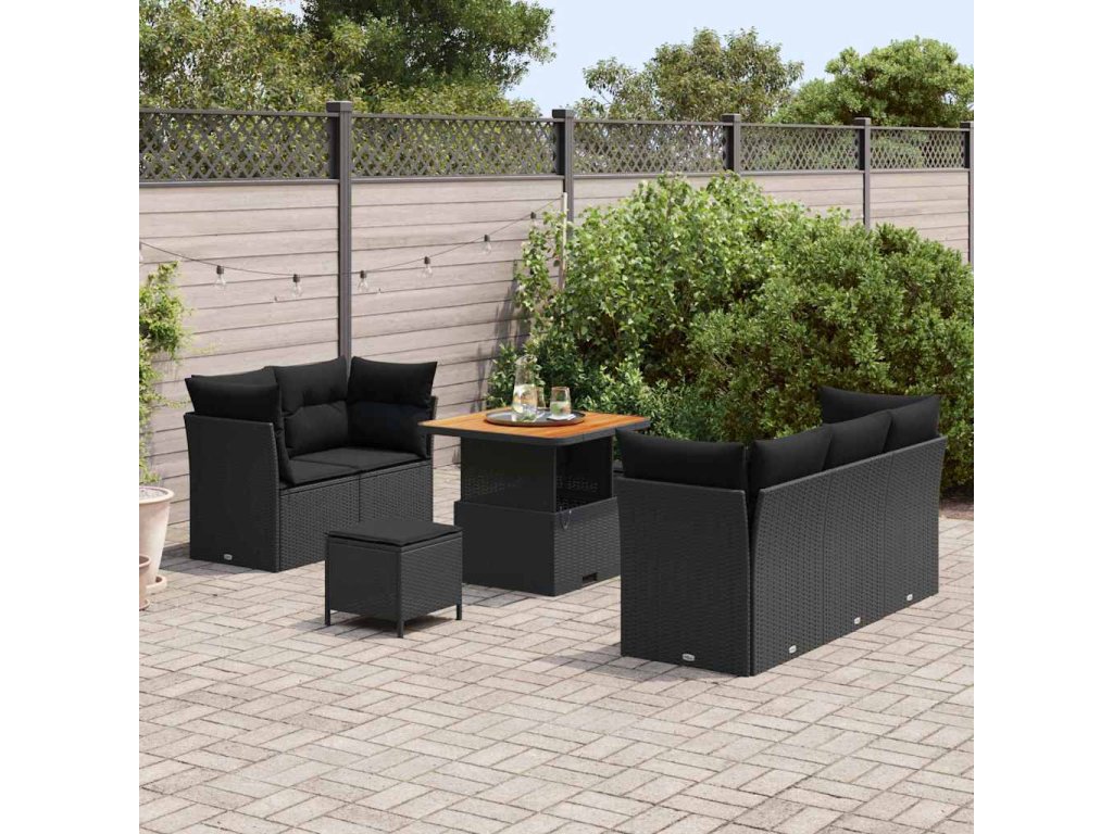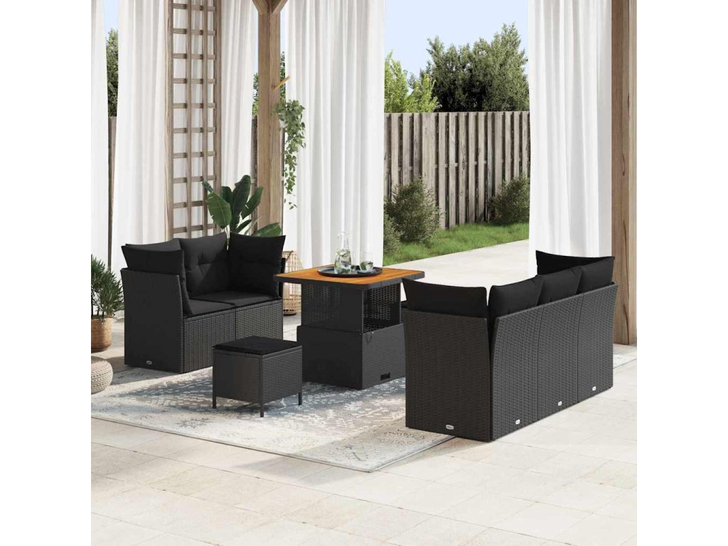 Sada zahradních pohovek s polštářem s úložištěm 8 pcs Černá 3363374