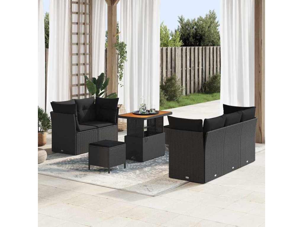 Sada zahradních pohovek s polštářem s úložištěm 8 pcs Černá 3363379