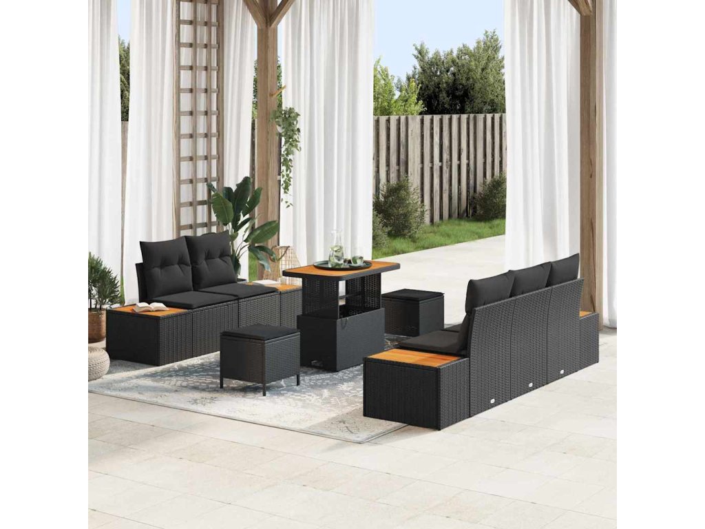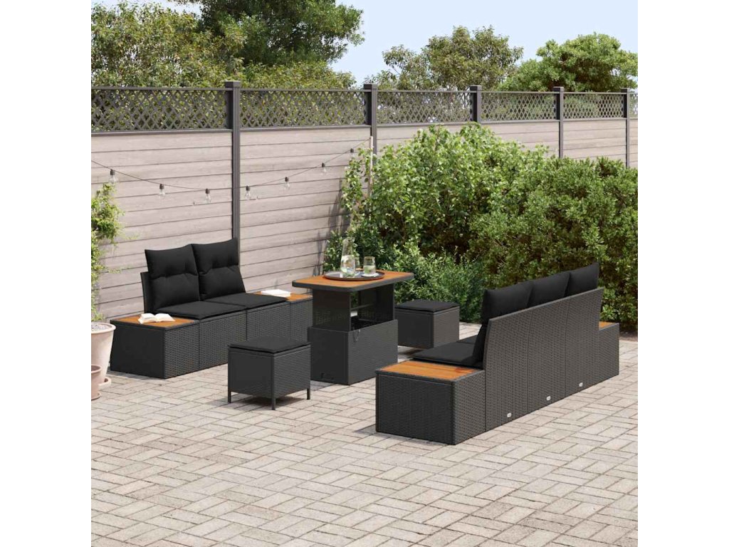 Sada zahradních pohovek s polštářem s úložištěm 8 pcs Černá 3364809
