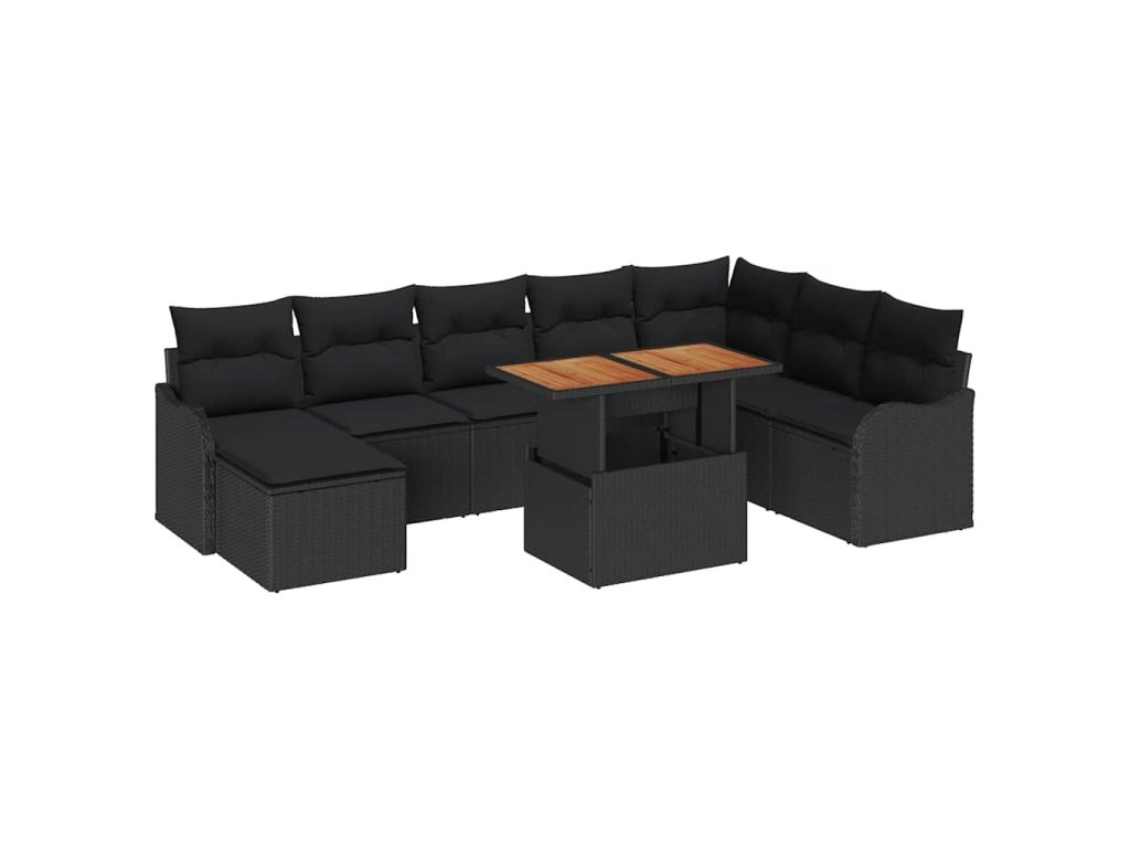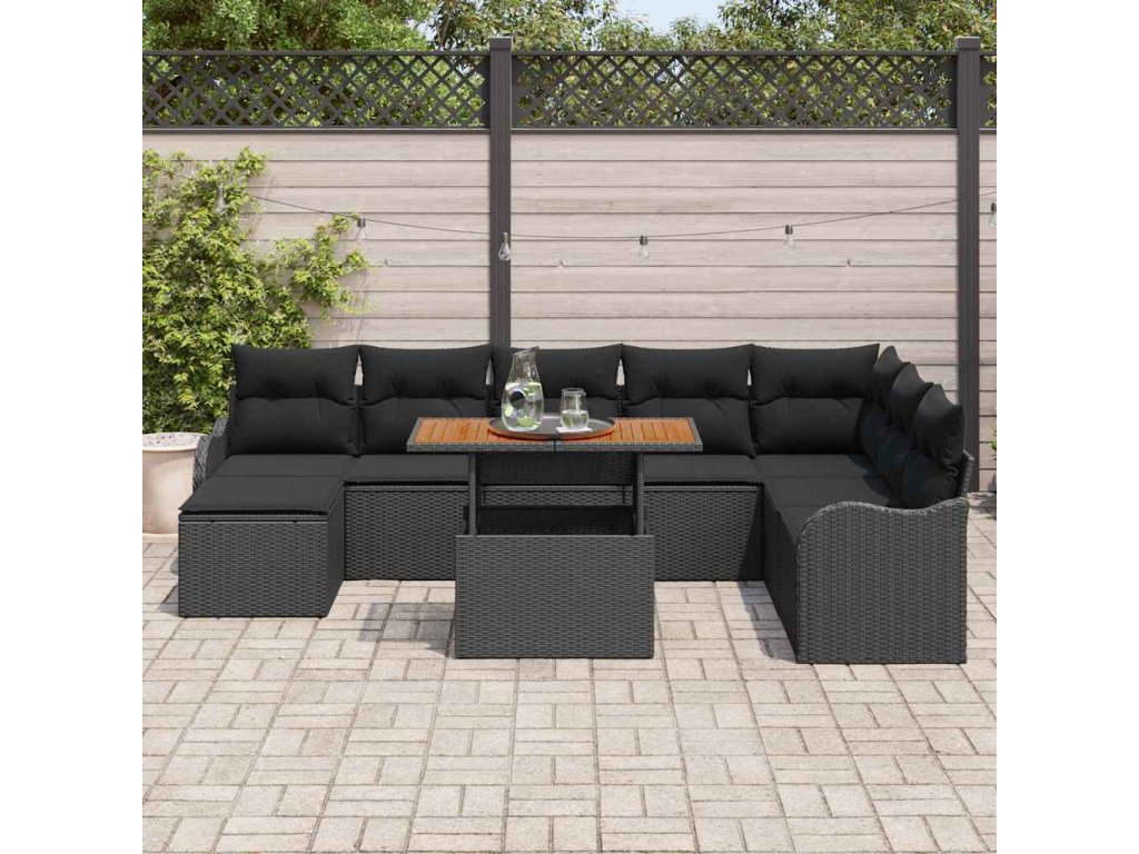 Sada zahradních pohovek s polštářem s úložištěm 9 pcs Černá 3349498