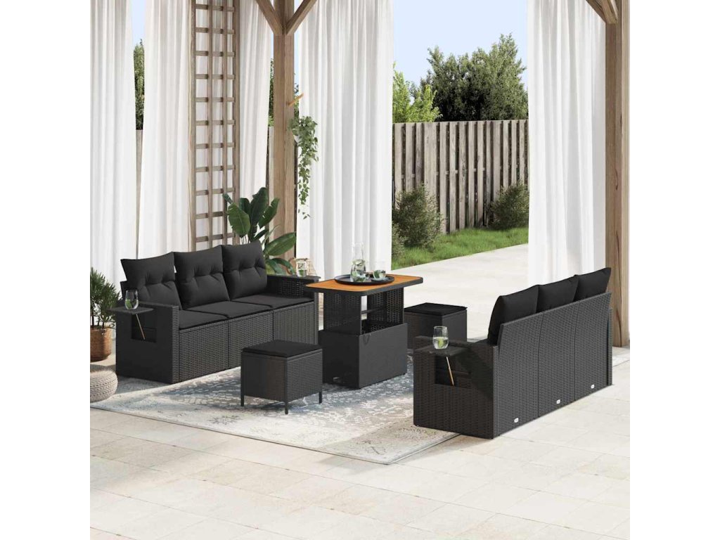 Sada zahradních pohovek s polštářem s úložištěm 9 pcs Černá 3363649