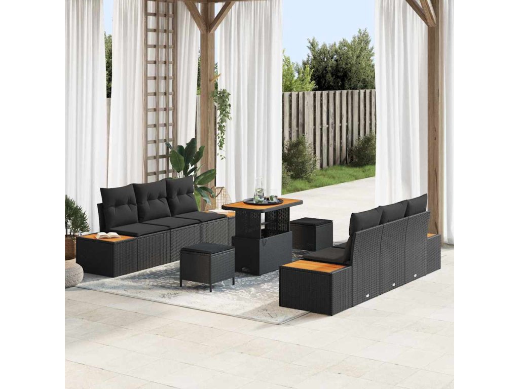Sada zahradních pohovek s polštářem s úložištěm 9 pcs Černá 3364819