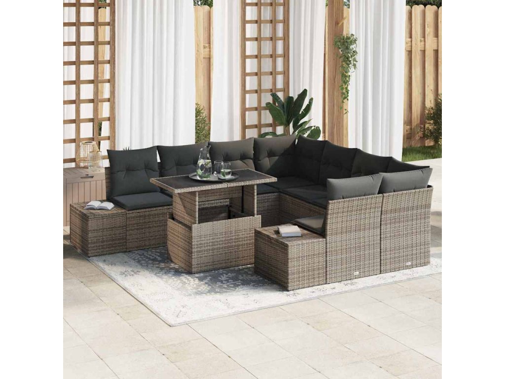 Sada zahradních pohovek s polštářem s úložištěm 9 pcs Šedá 3357892