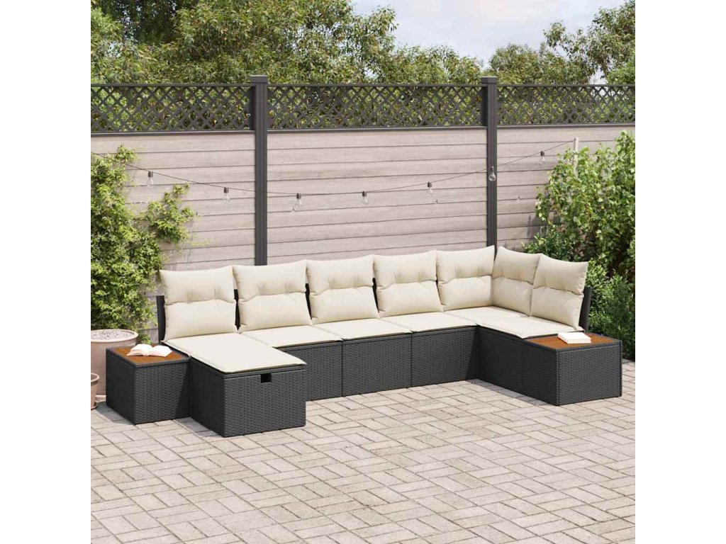 Sada zahradních pohovek s polštářem s úložištěm Černá polyratan 3359639