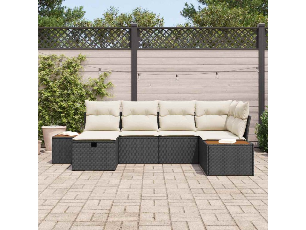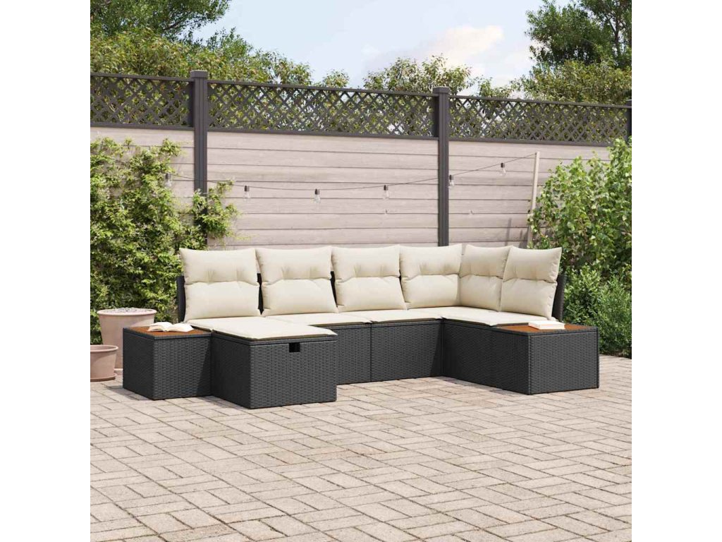 Sada zahradních pohovek s polštářem s úložištěm Černá polyratan 3360961