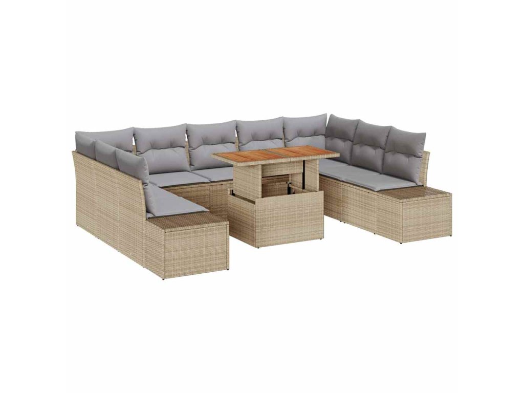 Sada zahradních pohovek s úložištěm 10 pcs Béžová Poly ratan 3358744