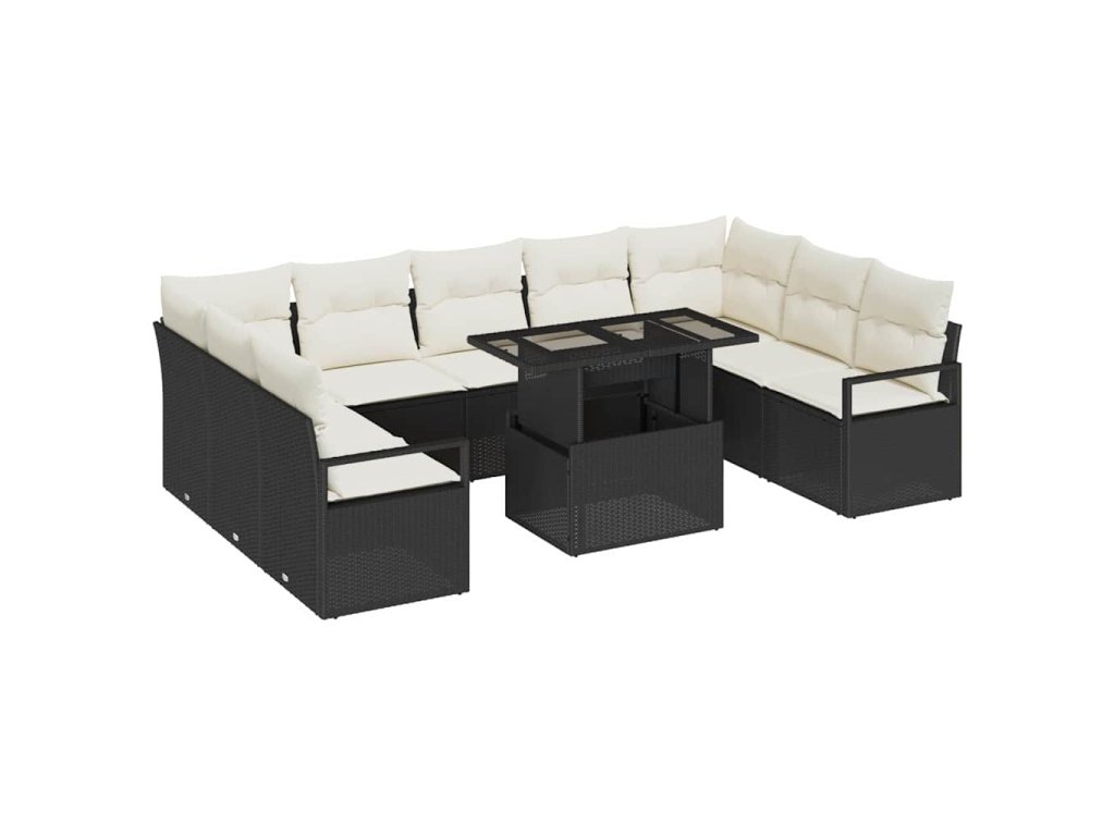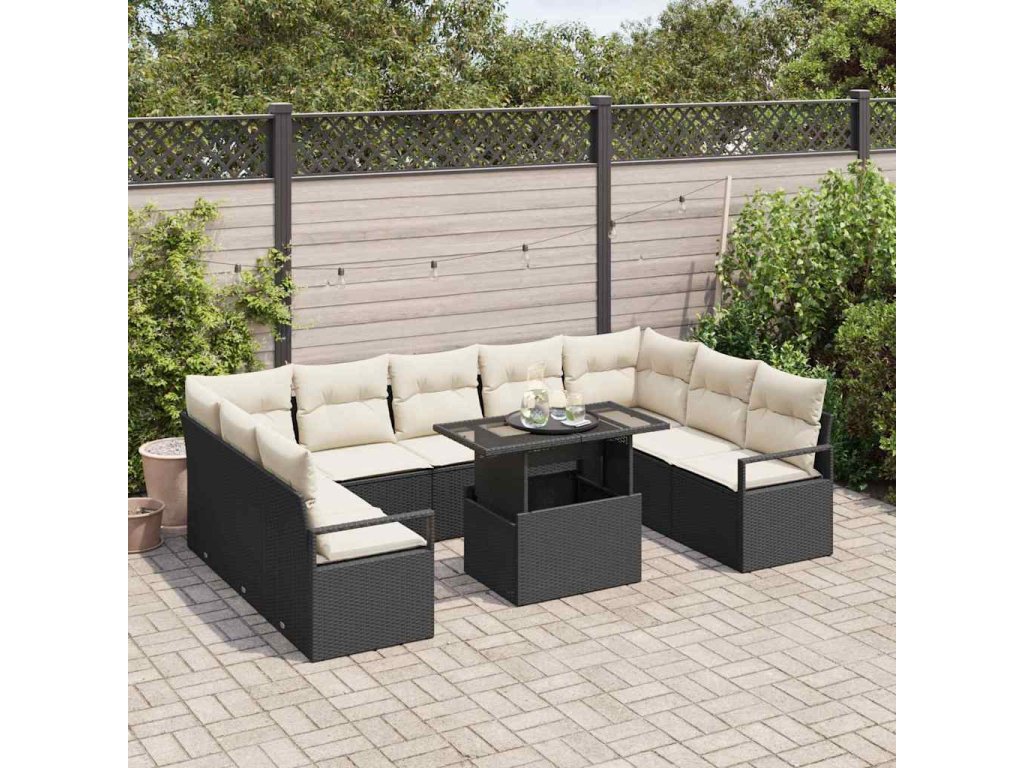 Sada zahradních pohovek s úložištěm 10 pcs Černá Poly ratan 3357620
