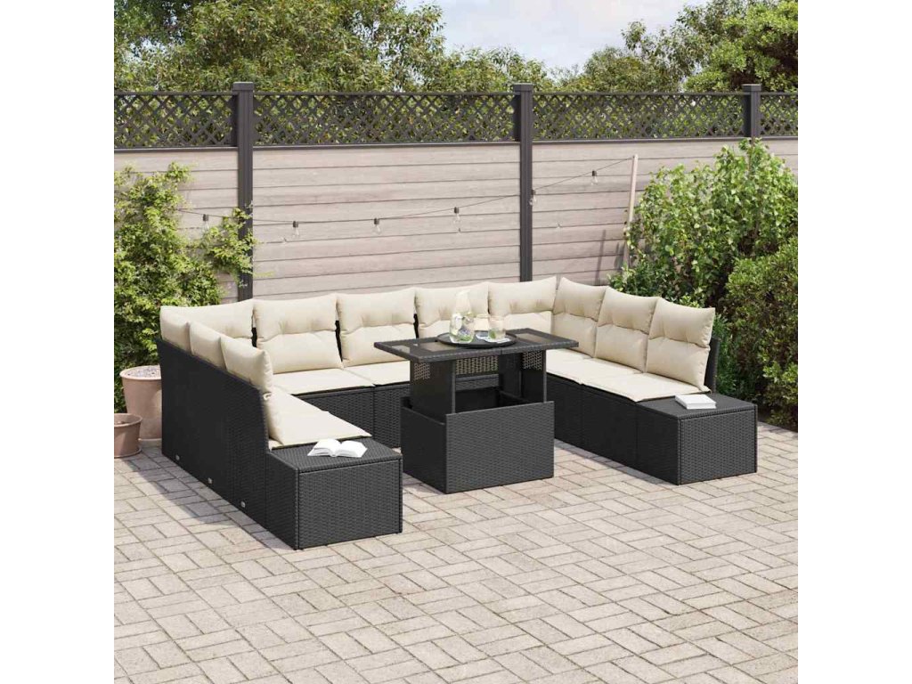 Sada zahradních pohovek s úložištěm 10 pcs Černá Poly ratan 3357980