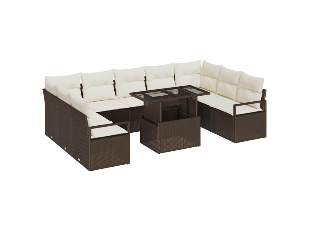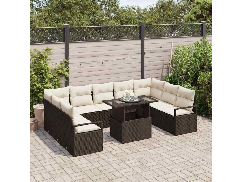 Sada zahradních pohovek s úložištěm 10 pcs Hnědá Poly ratan 3357621