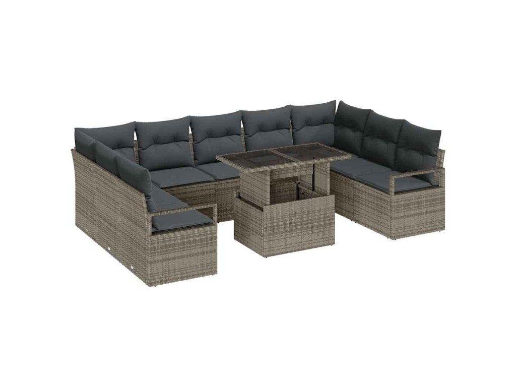 Sada zahradních pohovek s úložištěm 10 pcs Šedá Poly ratan 3357622