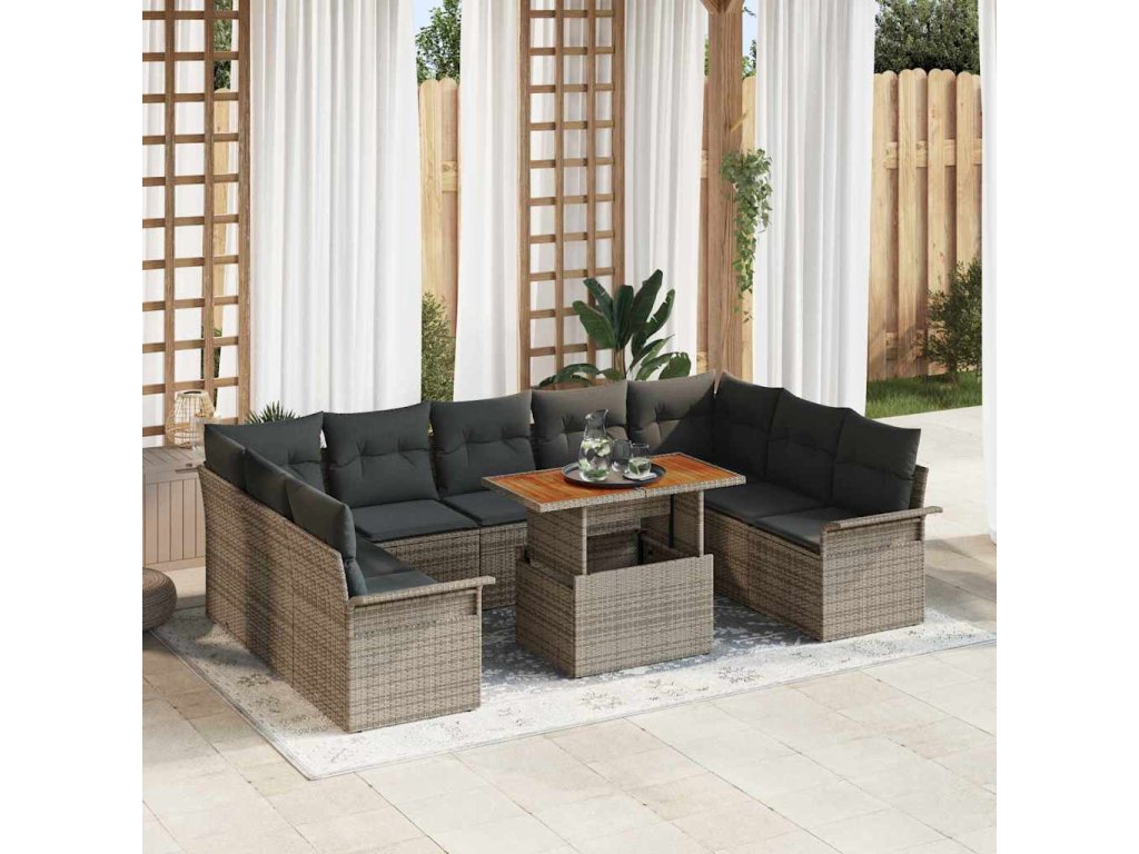 Sada zahradních pohovek s úložištěm 10 pcs Šedá Poly ratan 3358113