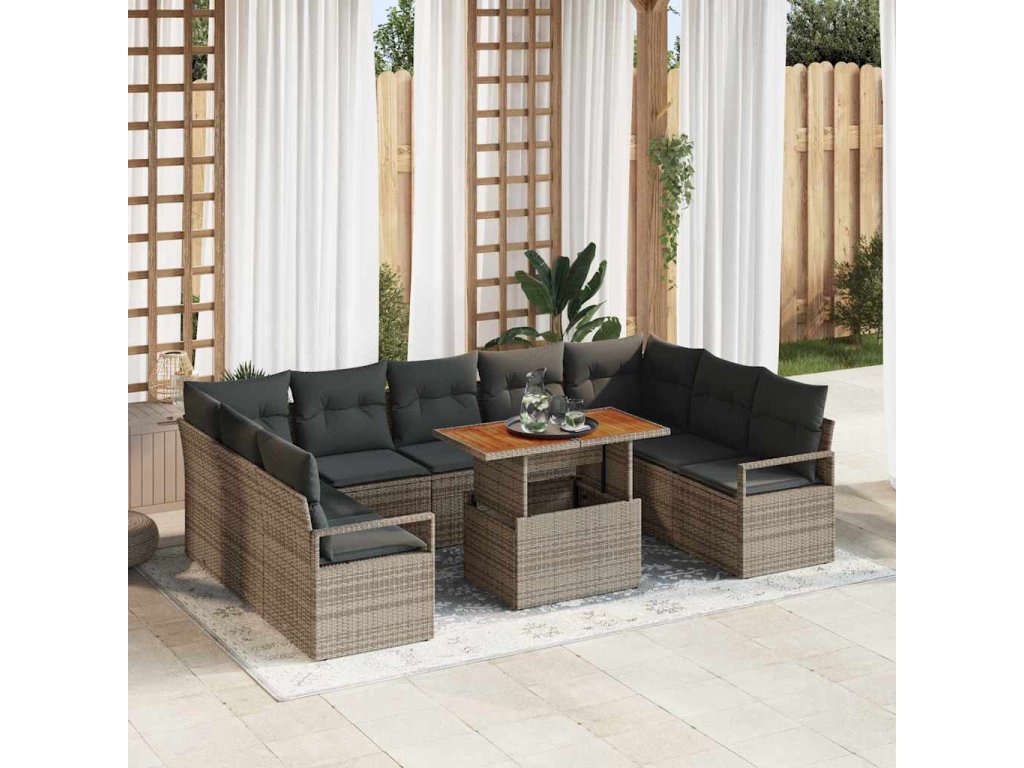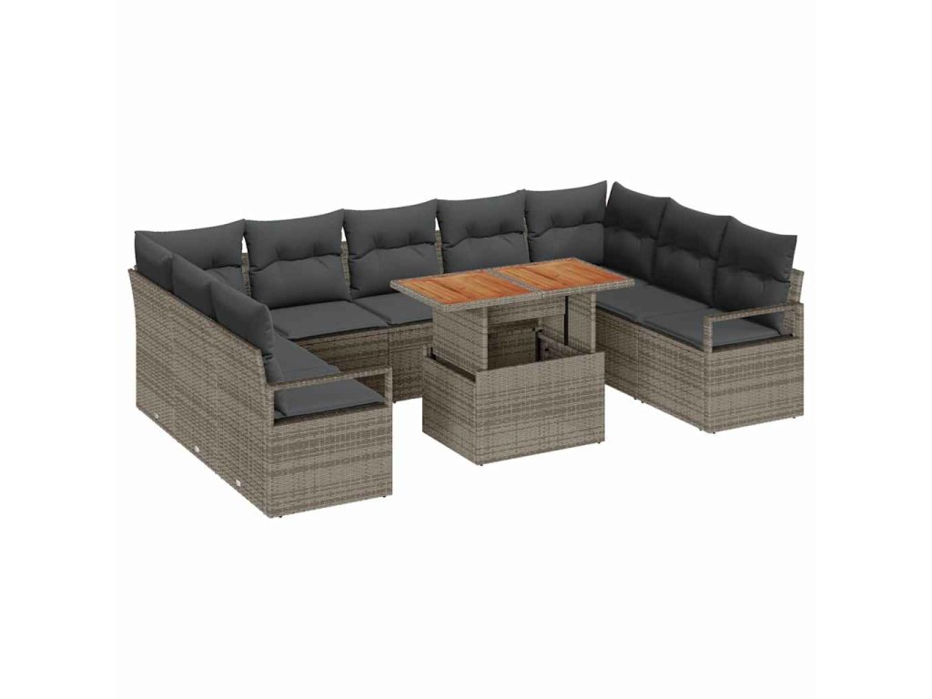 Sada zahradních pohovek s úložištěm 10 pcs Šedá Poly ratan 3358491