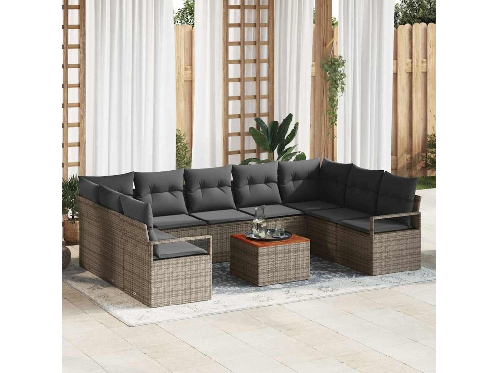 Sada zahradních pohovek s úložištěm 10 pcs Šedá polyratan 3356417