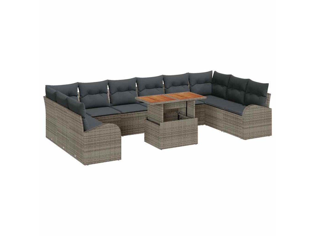 Sada zahradních pohovek s úložištěm 11 pcs Šedá Poly ratan 3358372