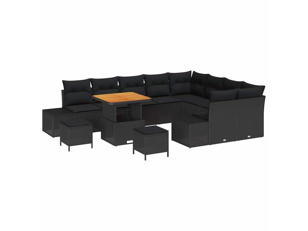Sada zahradních pohovek s úložištěm 12 pcs Černá Poly ratan 3362819