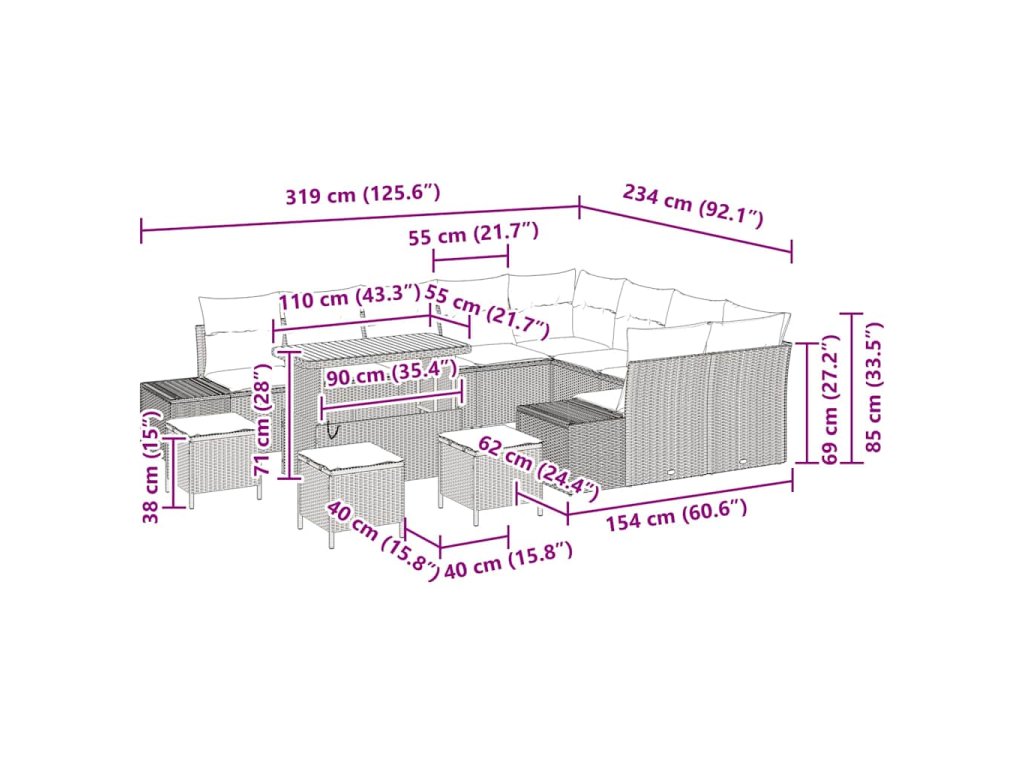 Sada zahradních pohovek s úložištěm 13 pcs Béžová Poly ratan 3362832