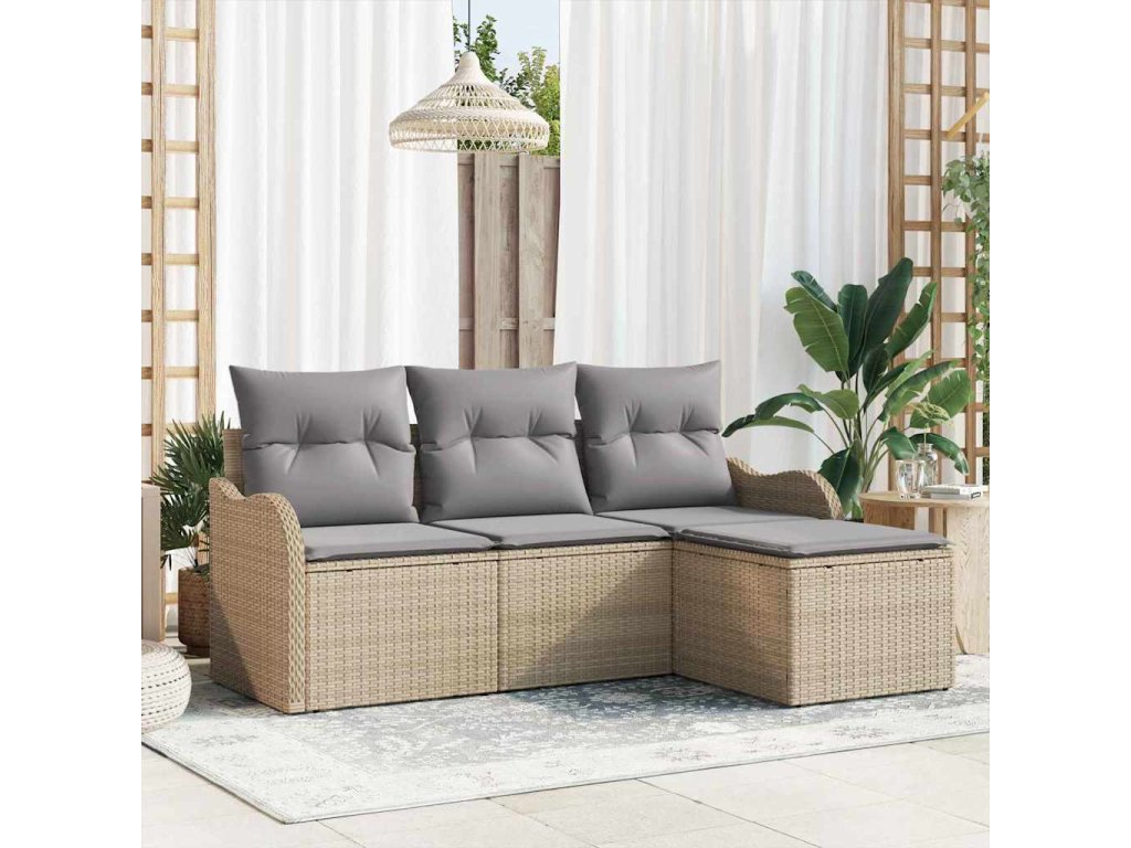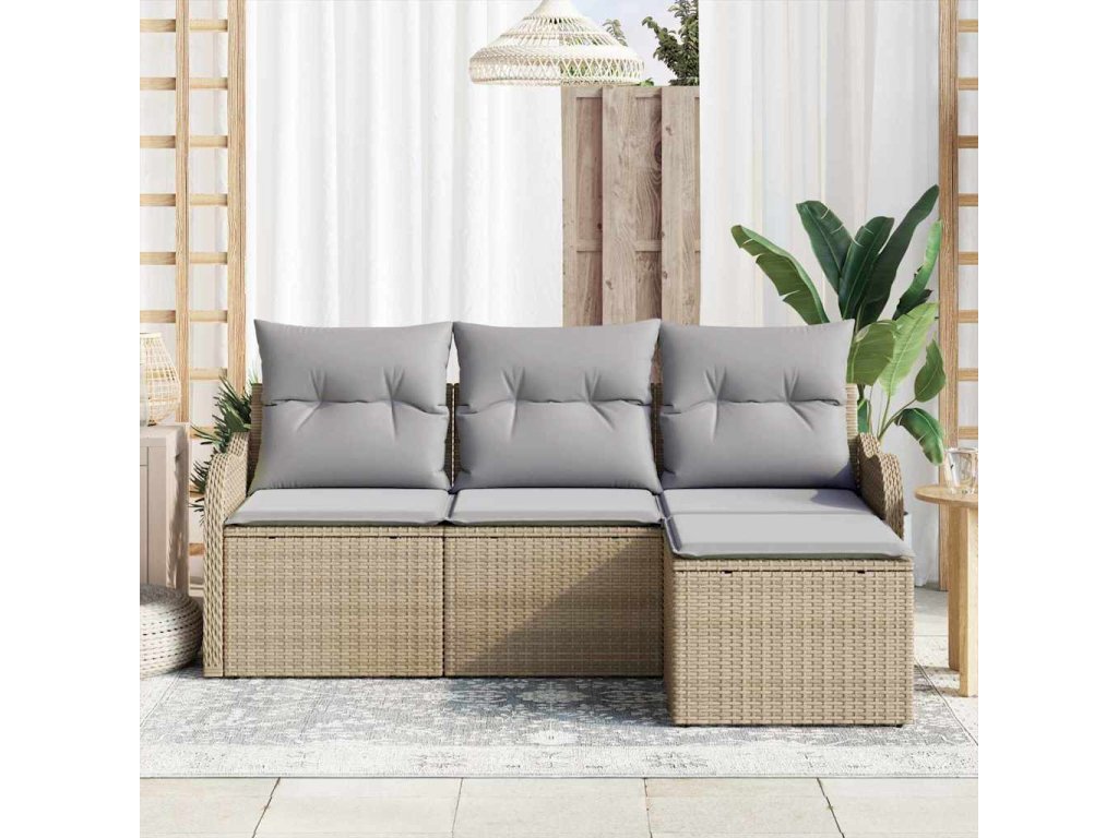 Sada zahradních pohovek s úložištěm 4 pcs Béžová polyratan 3354319