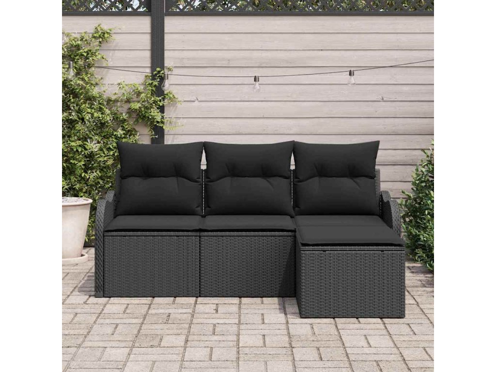 Sada zahradních pohovek s úložištěm 4 pcs Černá polyratan 3354322