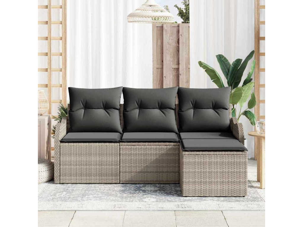 Sada zahradních pohovek s úložištěm 4 pcs Světle šedá polyratan 3354321