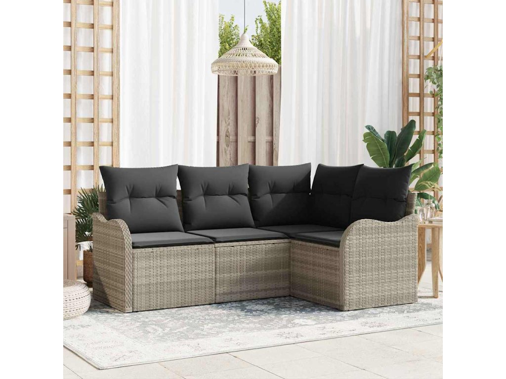 Sada zahradních pohovek s úložištěm 4 pcs Světle šedá polyratan 3354351