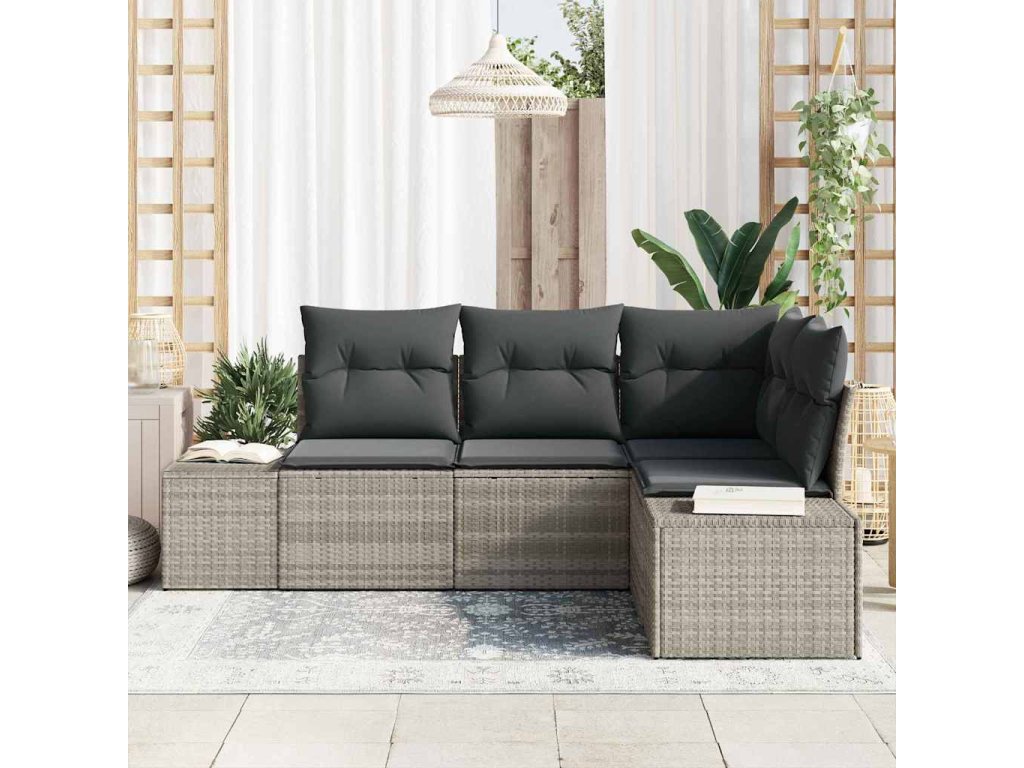 Sada zahradních pohovek s úložištěm 4 pcs Světle šedá polyratan 3355711