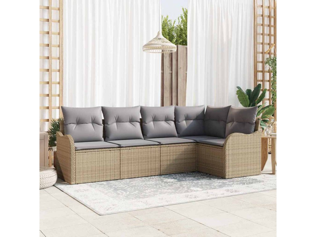 Sada zahradních pohovek s úložištěm 5 pcs Béžová polyratan 3354369