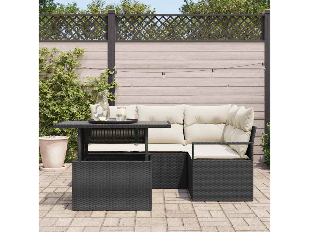 Sada zahradních pohovek s úložištěm 5 pcs Černá Poly ratan 3357550