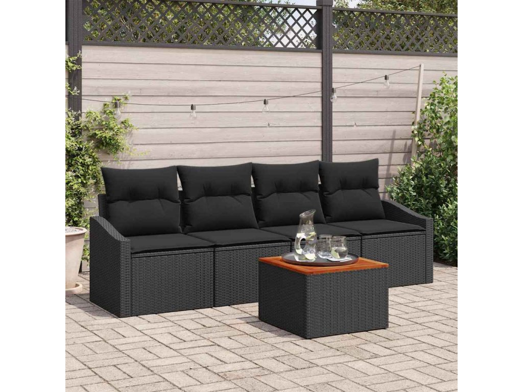Sada zahradních pohovek s úložištěm 5 pcs Černá polyratan 3356434