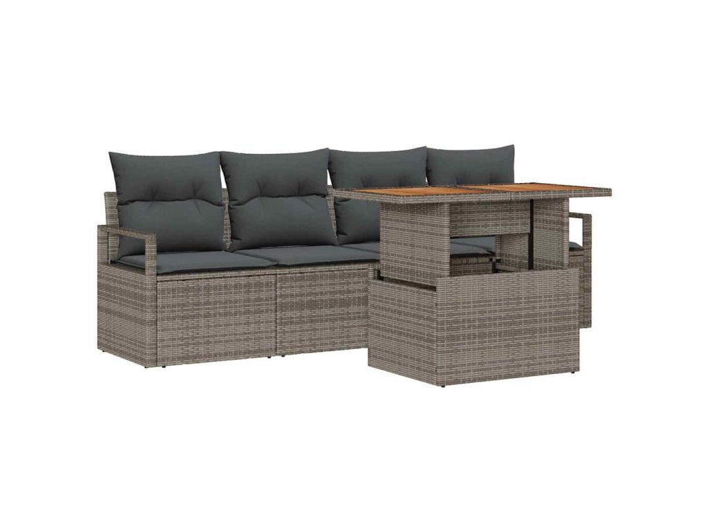 Sada zahradních pohovek s úložištěm 5 pcs Šedá Poly ratan 3358379