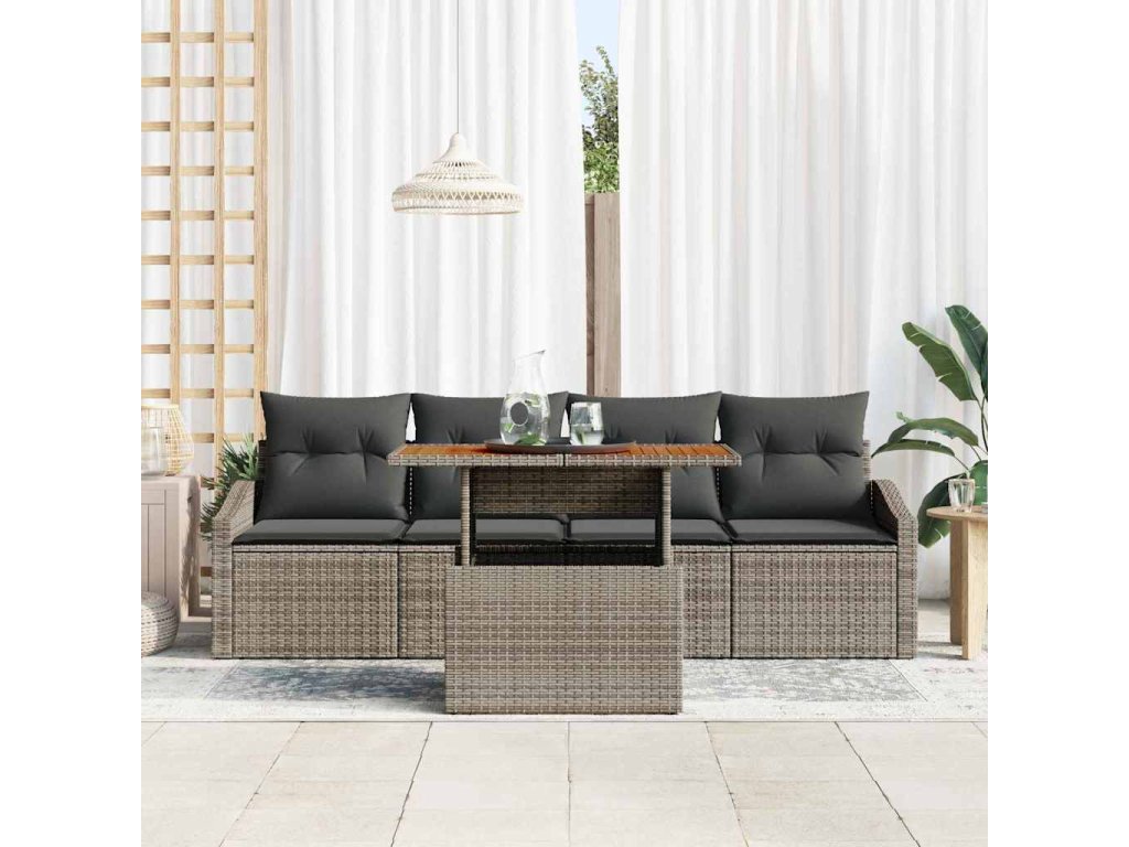 Sada zahradních pohovek s úložištěm 5 pcs Šedá Poly ratan 3358505