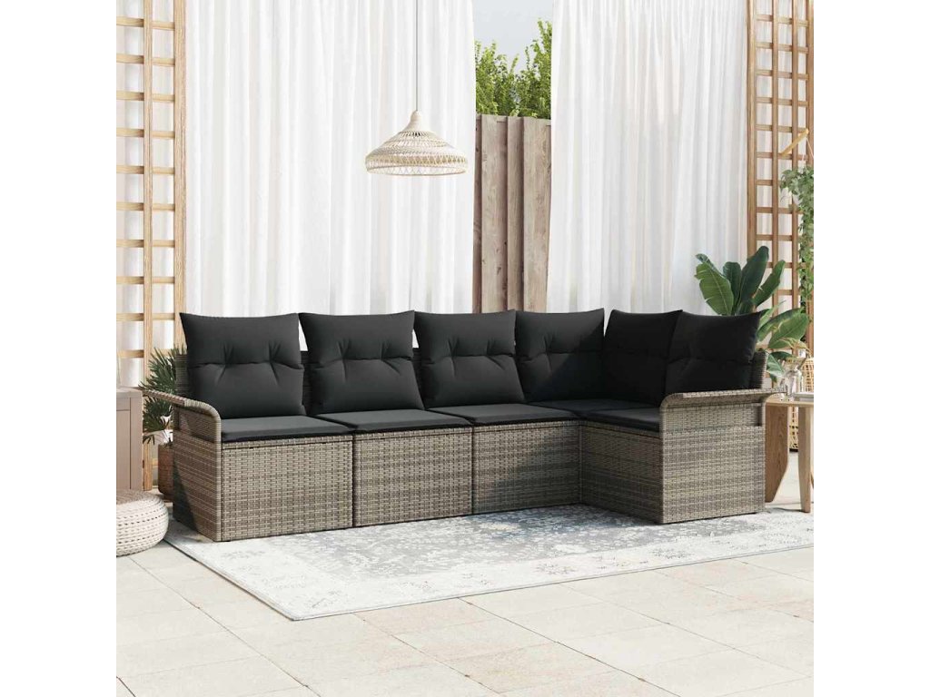 Sada zahradních pohovek s úložištěm 5 pcs Šedá polyratan 3354028