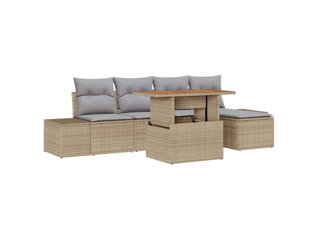 Sada zahradních pohovek s úložištěm 6 pcs Béžová Poly ratan 3358688