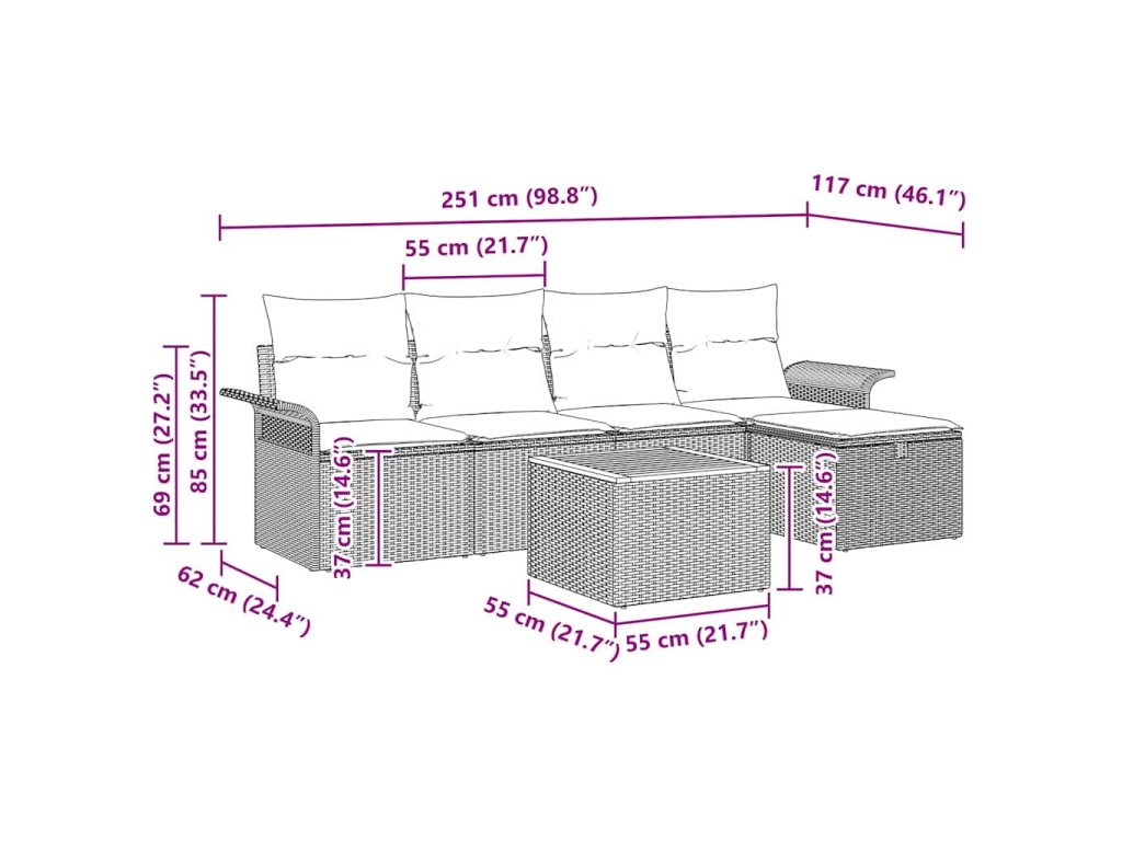 Sada zahradních pohovek s úložištěm 6 pcs Béžová Poly ratan 3359448