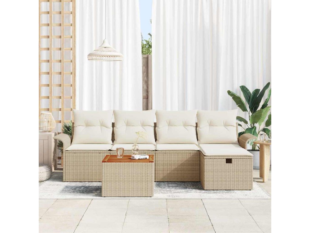 Sada zahradních pohovek s úložištěm 6 pcs Béžová Poly ratan 3359449