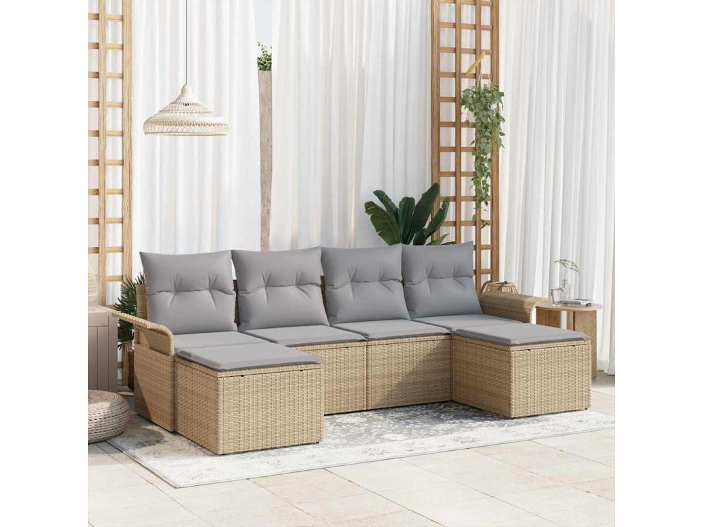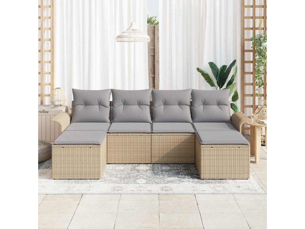 Sada zahradních pohovek s úložištěm 6 pcs Béžová polyratan 3354139