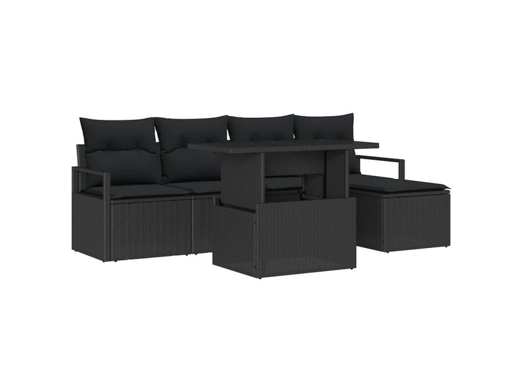 Sada zahradních pohovek s úložištěm 6 pcs Černá Poly ratan 3357546