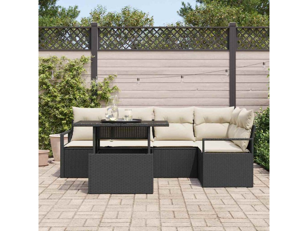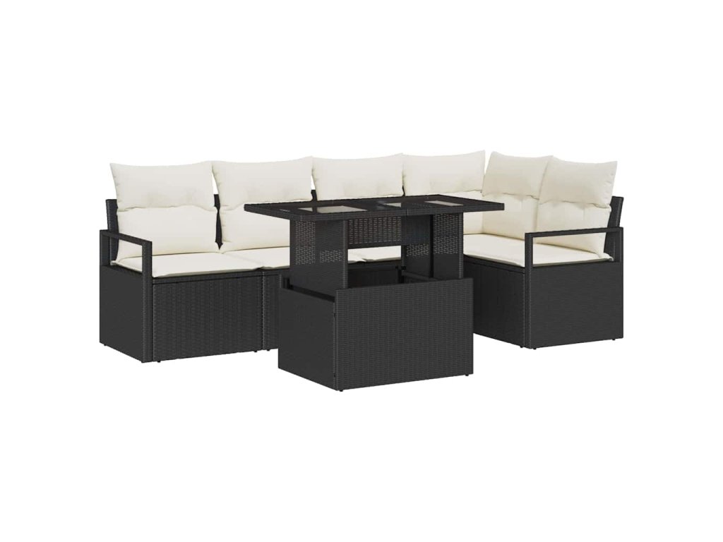 Sada zahradních pohovek s úložištěm 6 pcs Černá Poly ratan 3357560