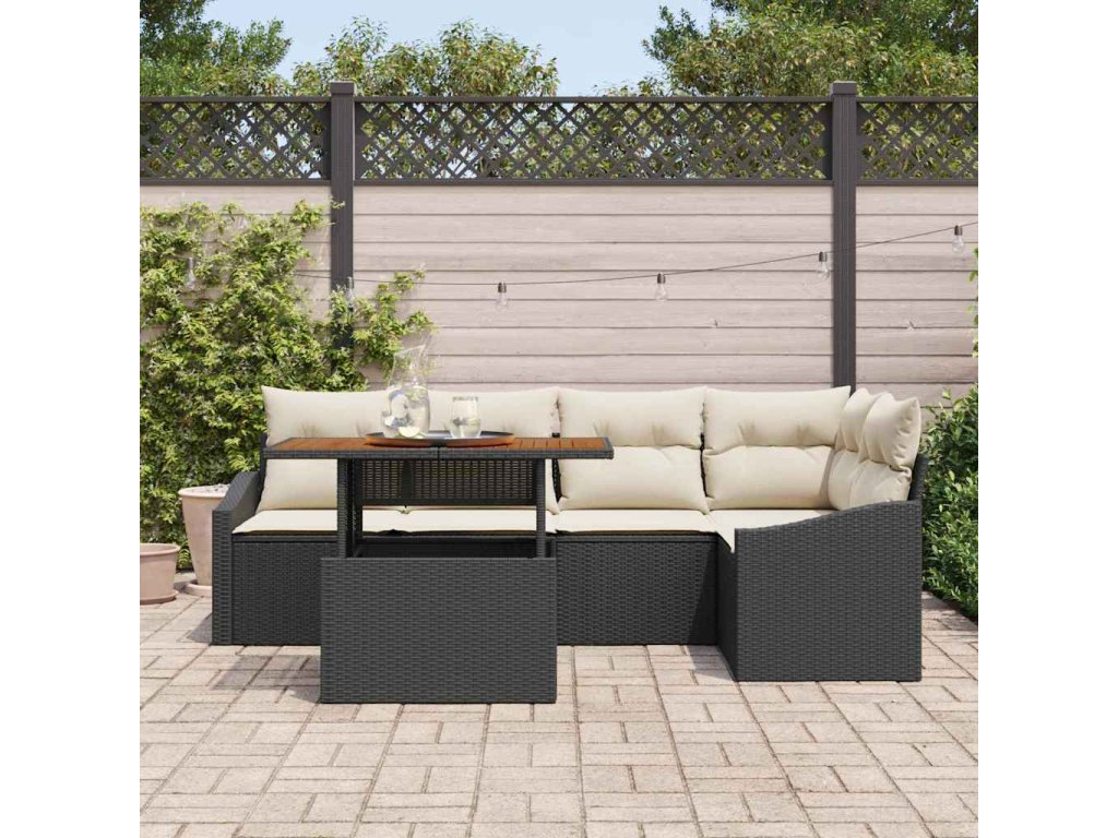 Sada zahradních pohovek s úložištěm 6 pcs Černá Poly ratan 3358574