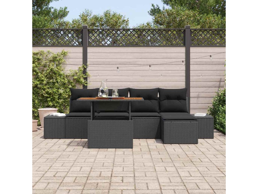 Sada zahradních pohovek s úložištěm 6 pcs Černá Poly ratan 3358690