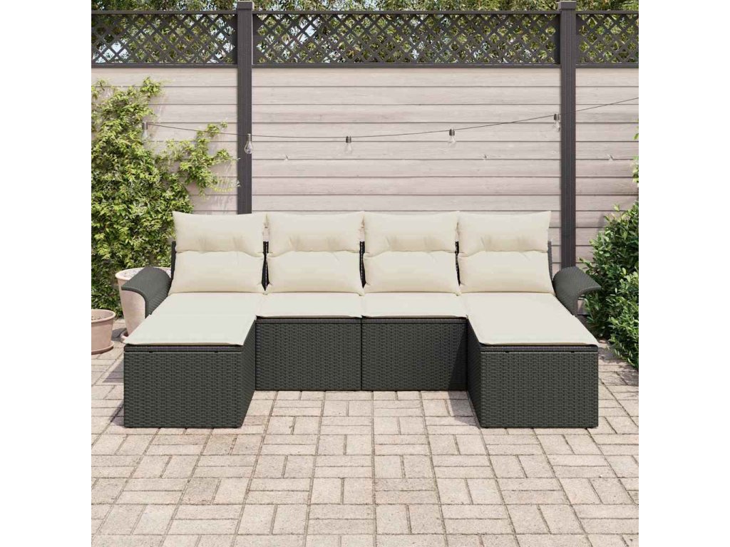 Sada zahradních pohovek s úložištěm 6 pcs Černá polyratan 3354136