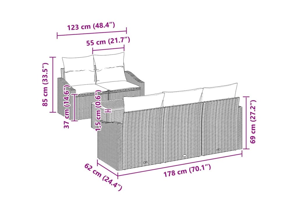 Sada zahradních pohovek s úložištěm 6 pcs Černá polyratan 3356441