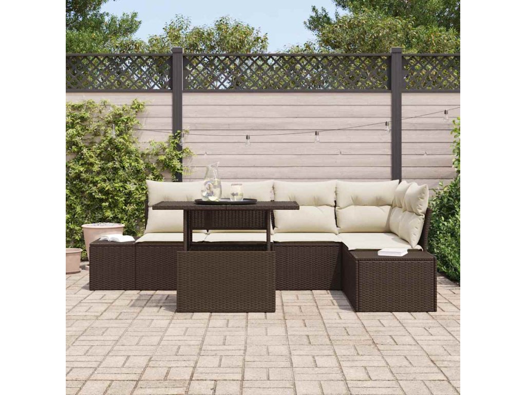 Sada zahradních pohovek s úložištěm 6 pcs Hnědá Poly ratan 3357921
