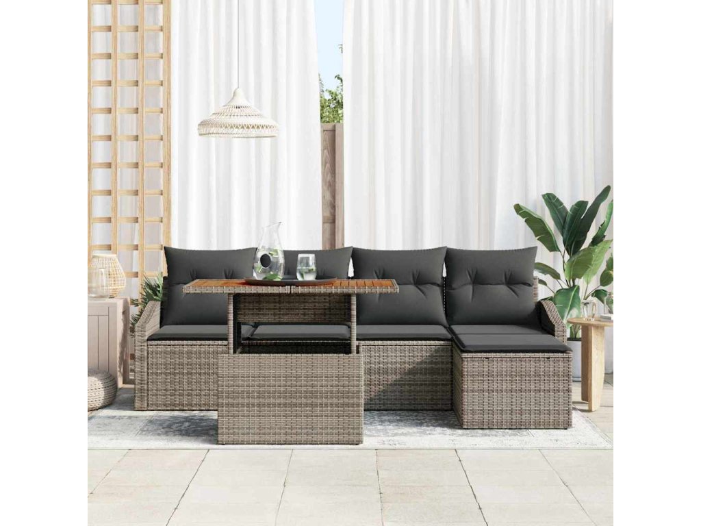 Sada zahradních pohovek s úložištěm 6 pcs Šedá Poly ratan 3358561
