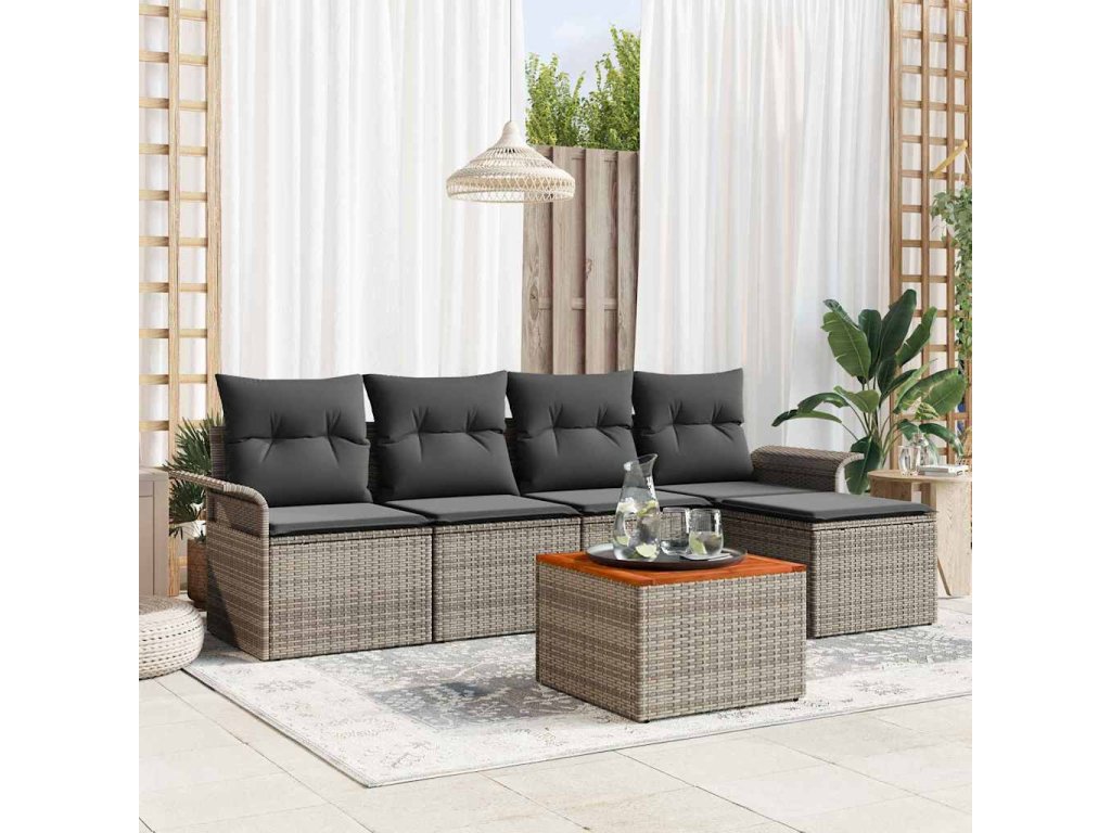 - Kvalitní materiály: Vyrobeno z poly ratanu, takže je odolné a lehké. Tato souprava zvládne venkovní podmínky a stále vypadá stylově. Masivní akáciové dřevo dodává stable a robustní základ, což spojuje funkčnost a design.