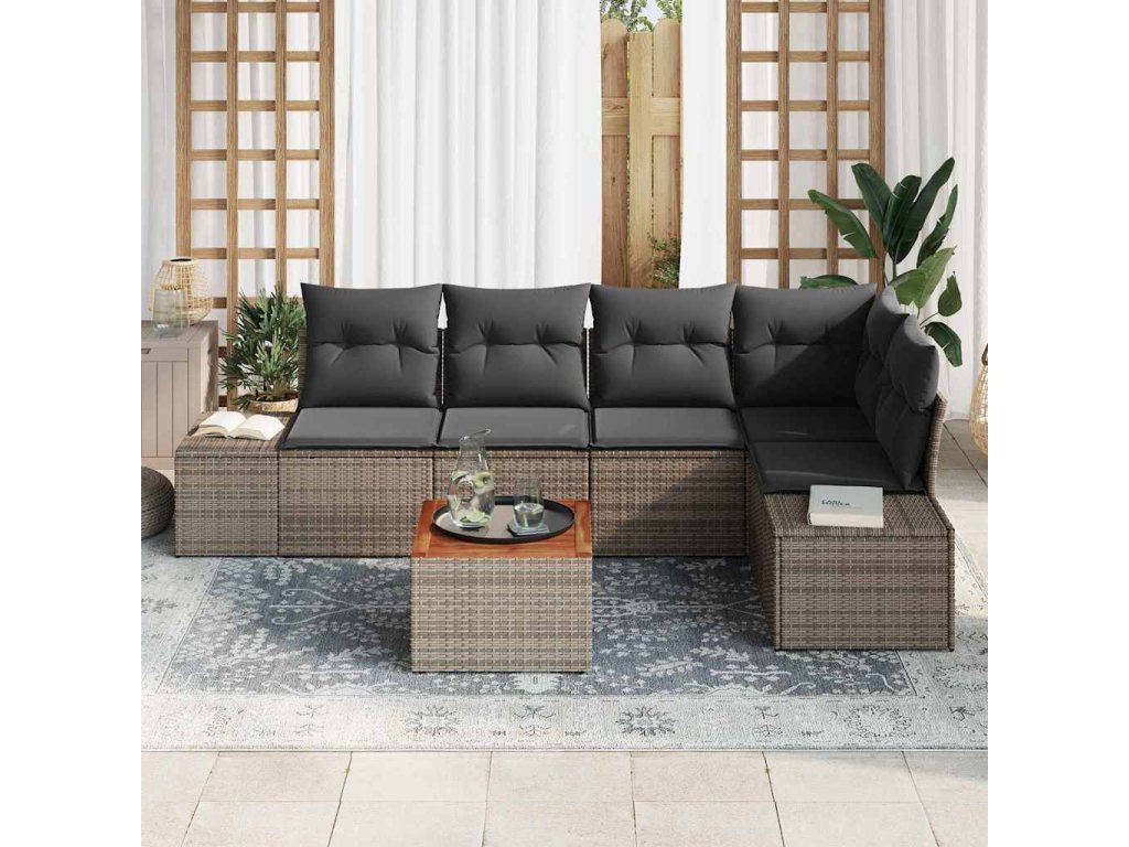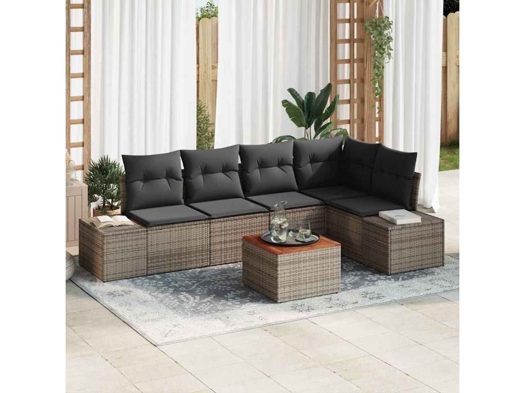 Sada zahradních pohovek s úložištěm 6 pcs Šedá polyratan 3356627