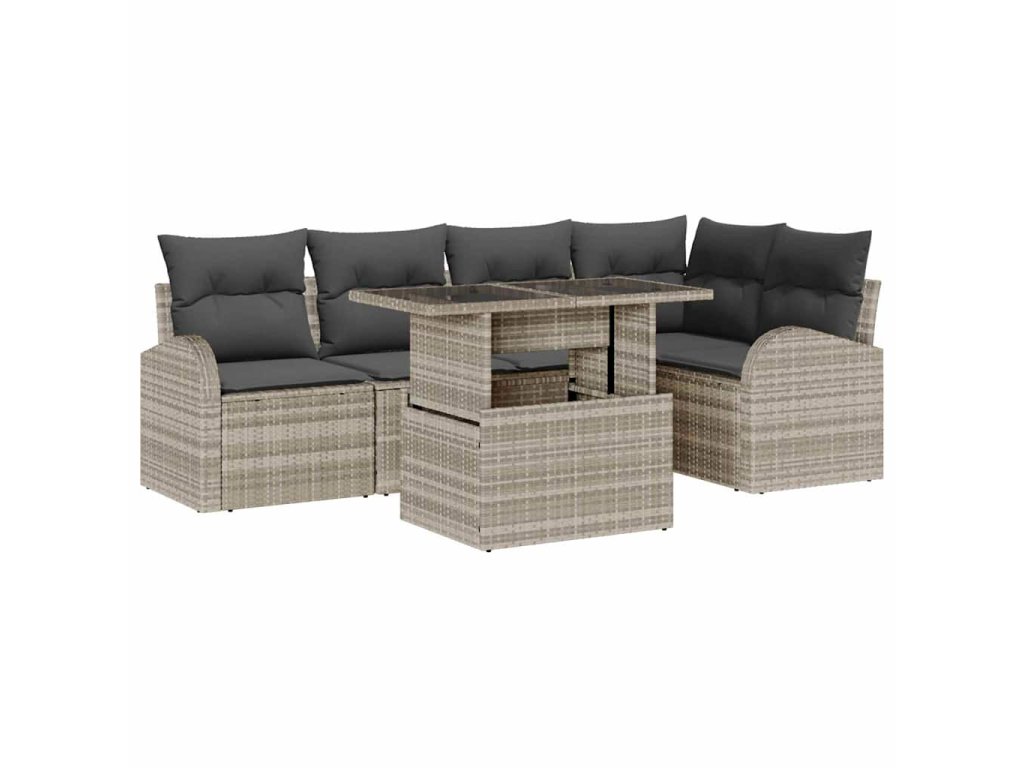 Sada zahradních pohovek s úložištěm 6 pcs Světle šedá polyratan 3348648