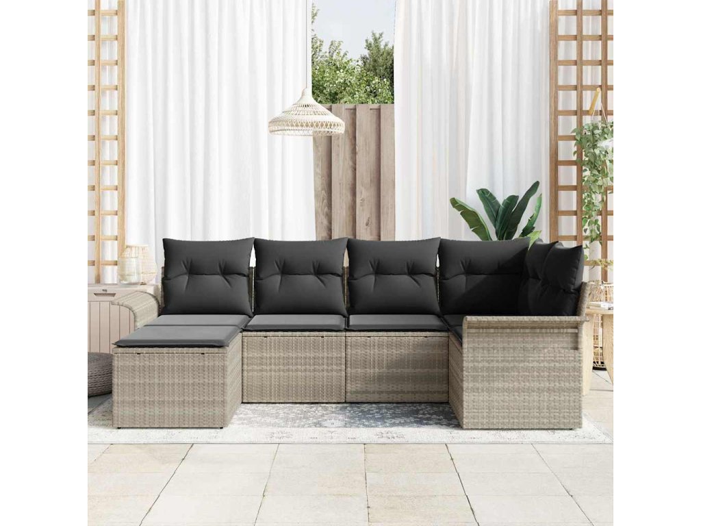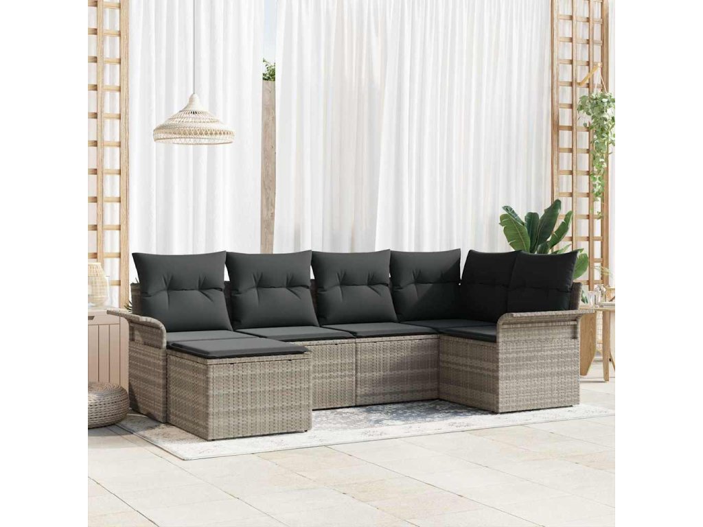 Sada zahradních pohovek s úložištěm 6 pcs Světle šedá polyratan 3354101